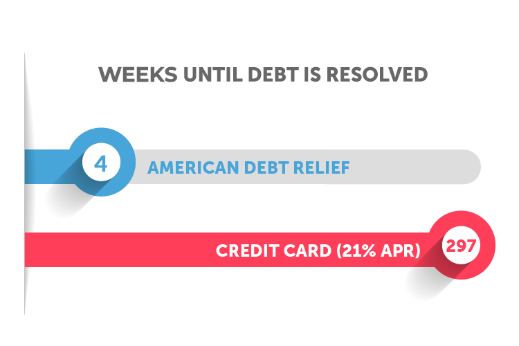 At American Debt Relief, we help people just like you get debt-free in as few as 4 weeks. Our proven program provides the relief you need without taking on another loan or declaring bankruptcy.